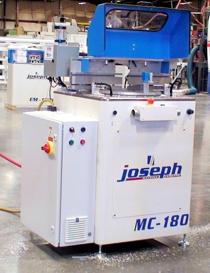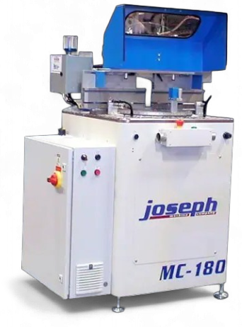 The MC-180 Geometric Saw is a specialized, automated multi-angle cutting solution designed for trapezoidal and other complex geometric frame components. Its adjustable saw chassis enables precise cutting of varied angles, making it ideal for non-rectangular profiles in architectural, industrial, and specialty applications. The bottom-mounted saw blade strokes upward, providing safe, efficient cutting and optimal material support during the cut. When paired with the Joseph jStop Computerized End Stop, the MC-180 gains fully automated, repeatable positioning for workpieces without the need for a pusher system—allowing operators to quickly process batches of varying lengths while maintaining tight tolerances. With a 16″ carbide-tipped blade powered by a 3 hp motor, the MC-180 delivers consistent performance and cut accuracy within ±0.5°.