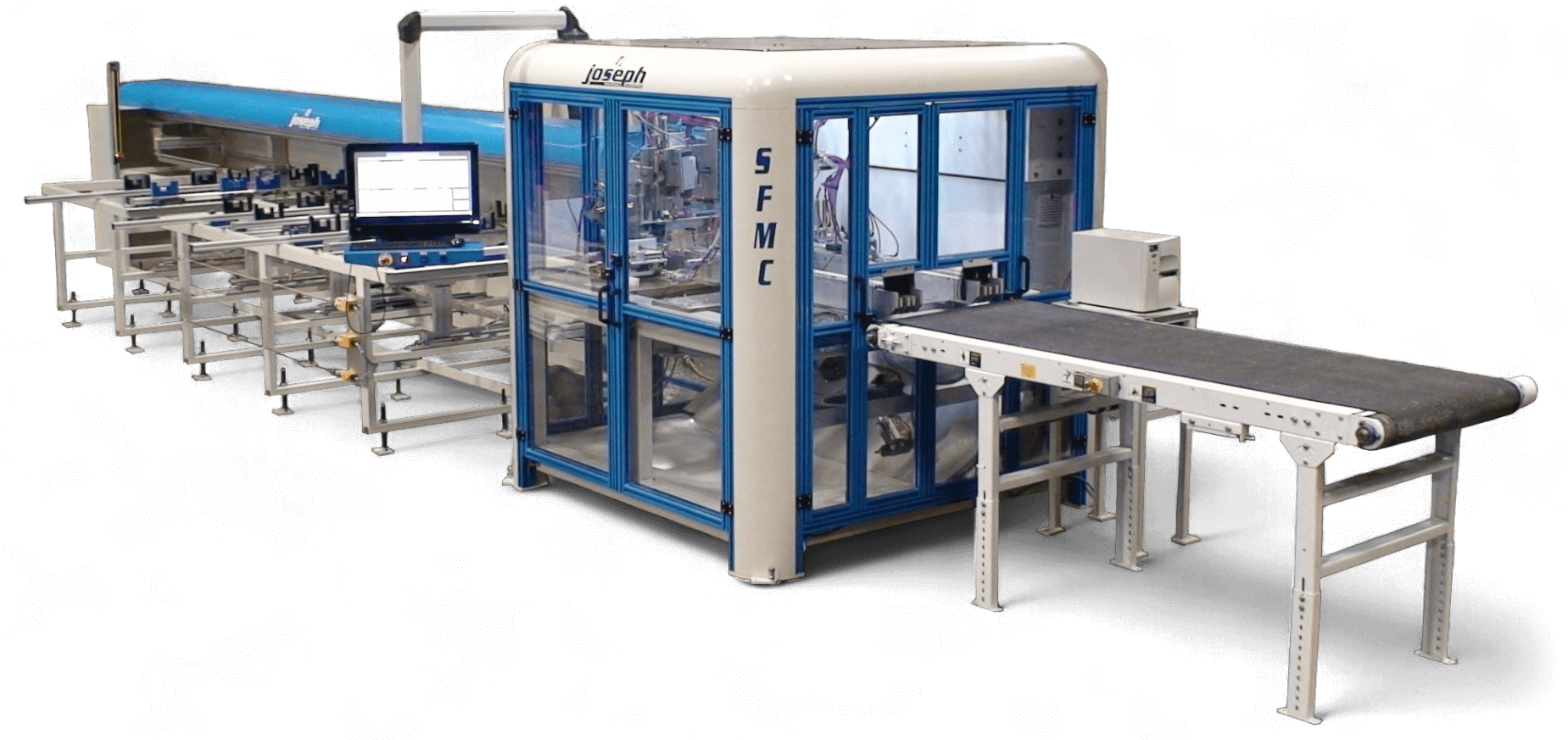 The SFMC Door Processor is engineered to handle every cut and fabrication required for door manufacturing in a single, automated flow. Combining 45° miter and/or 90° straight-cut saw modules with a fully configurable tooling array, it eliminates secondary operations, reduces labor, and delivers consistent, production-ready components at high speed.